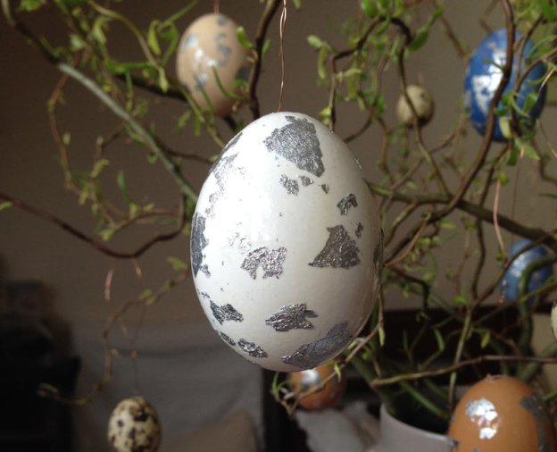 Aber hey: die Eier sahen hinterher immer aus, als wären sie unversehrt. Zumindest so lange, bis ich das Loch größer machen musste, um die Aufhängung anzubringen.