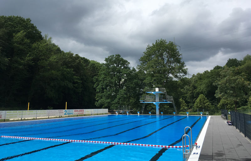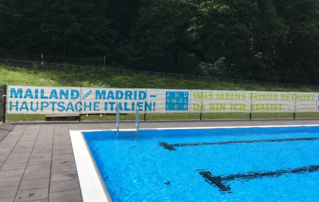 Was Geographiekenntnisse angeht, spiele ich wohl in einer Liga mit Andi Möller. Sein legendärer Spruch verschönert den Beckenrand des Schwimmbads.