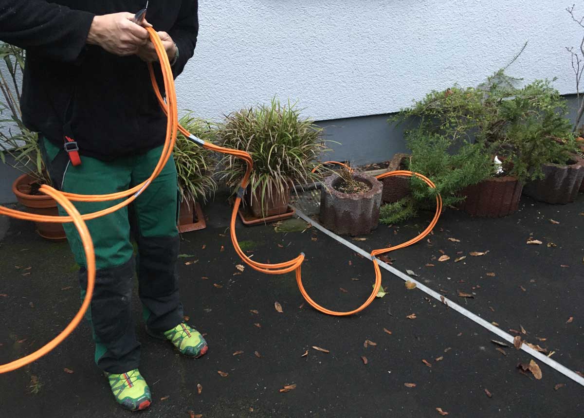 Dann zieht der Lieblingsmann aber den Stecker, und zwar im wahrsten Sinne des Wortes. Wir haben nämlich letzte Woche provisorisch ein Netzwerkkabel vom Fotostudio in unser Hinterhaus gelegt und obwohl nichts so haltbar ist wie ein Provisorium, muss das Kabel jetzt in einen Kabelkanal verpackt werden.