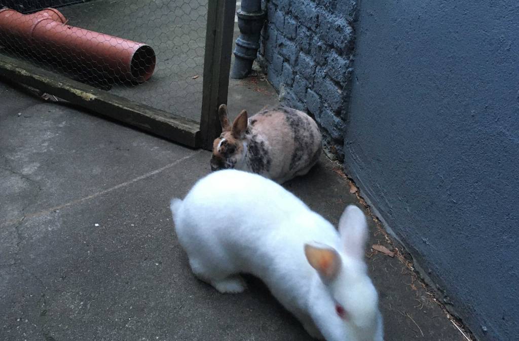 Eigentlich hatte ich vor, nachmittags zufällig eine Freundin zu treffen und gemeinsam eine Zigarette aus Gründen der Corona-Vorsorge zu rauchen, das klappt leider nicht, also leisten mir die Kaninchen Gesellschaft.