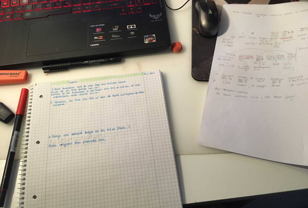 Zwischendrin helfe ich der Tochter bei Latein, dummerweise hat der Lehrer diesmal keine Musterlösung eingestellt und die Tochter will auch nicht über die Straße laufen und beim Lateinlehrer klingeln und ihn darauf hinweisen. Na gut, dann halt Ovids Metamorphosen. Immerhin habe ich ja einen schwarzen Gürtel in Latein.