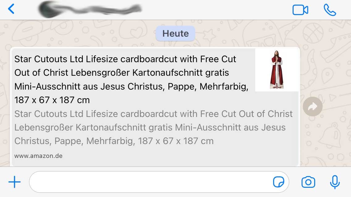 Apropos Jehova: Das Kind, das eine 5 in Religion im letzten Zeugnis nach Hause gebracht hat, wünscht sich einen lebensgroßen Jesus-Pappaufsteller für sein Zimmer und ich weiß jetzt auch nicht.