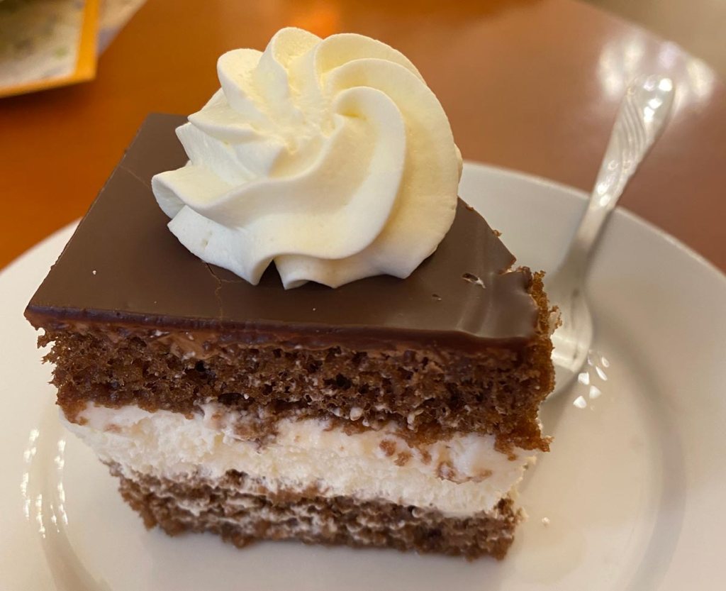 Obwohl irgendwann mal Regen angesagt war, scheint die Sonne, aber es ist ganz schön kalt, also gehe ich gemeinsam mit Heike, einer anderen alleinreisenden deutschen Tourbesucherin einen Kaffee trinken und probiere den Wuzetka-Kuchen, laut Führung eine Warschauer Spezialität.