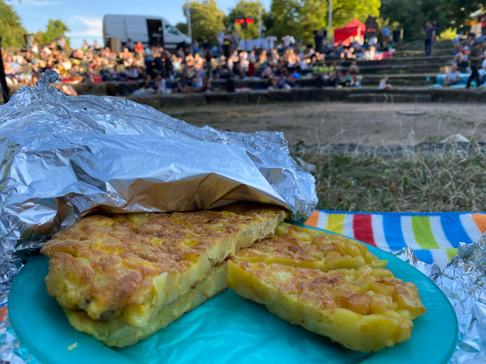 Der Sohn geht gerade lieber ins Fitnessstudio (ich glaube, der wohnt da inzwischen) und der Mann fühlt sich nicht so gut, deshalb gehen die Tochter und ich alleine zum Improsommer mit wohlgefülltem Picknick-Körbchen.