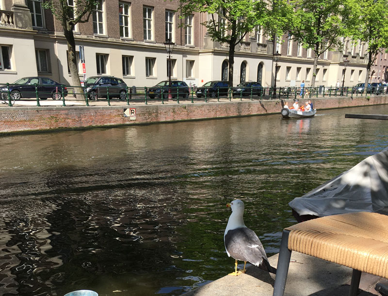 Breakfast with a view: Am häufigsten werden aus den Grachten Fahrräder rausgefischt. Manchmal auch Touristen. Guess welche Nationalität am häufigsten besoffen reinfällt und ertrinkt?