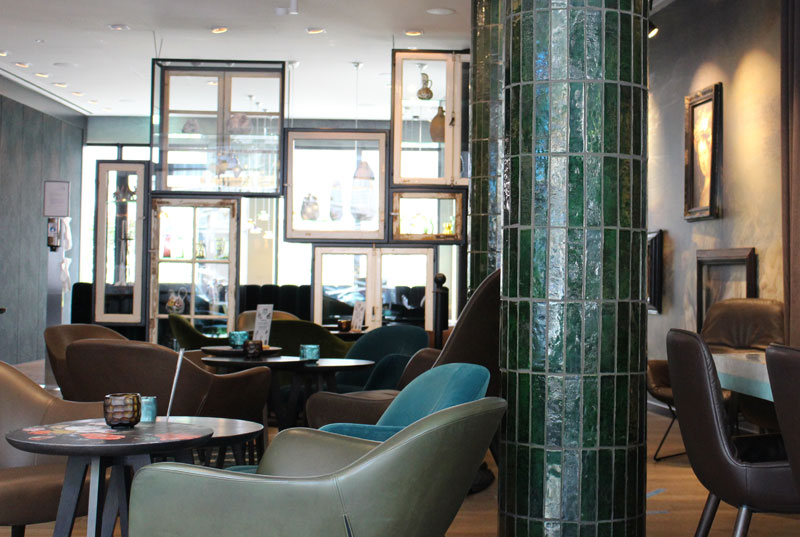 Im Hotel holen wir dann unsere Koffer ab, aber für einen Kaffee in der Lobby ist noch Zeit.