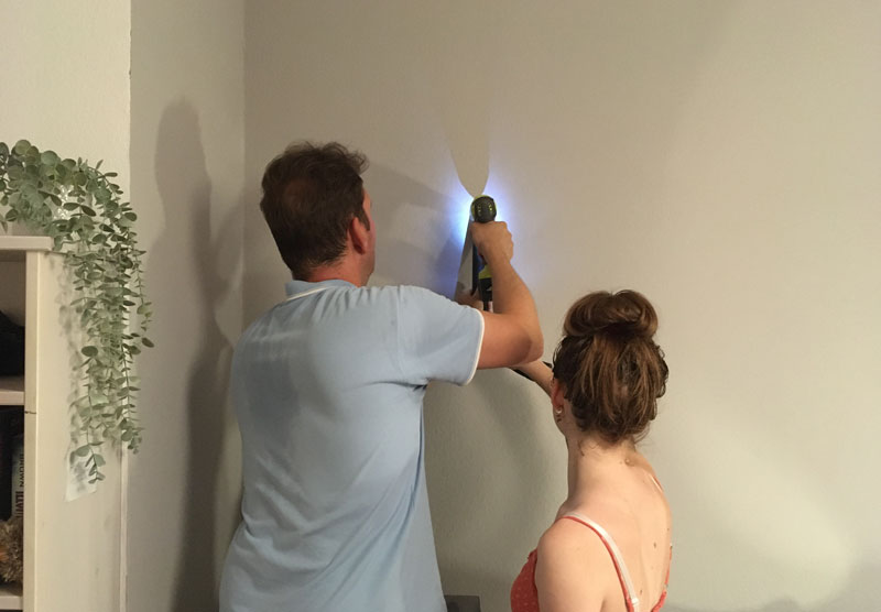 Aber ich bin nicht die einzige, die hier was schafft, der Lieblingsmann und die Tochter hängen derweil den Spiegel im neuen Teenietraumzimmer auf.